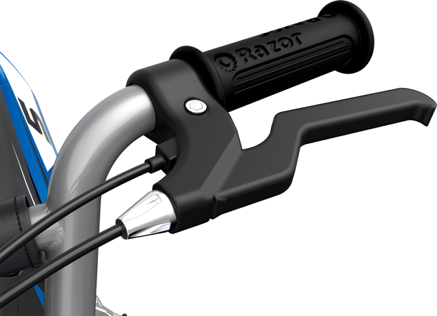 Rear-wheel drive delivers greater power and traction, while the twist-grip throttle and hand-operated rear brake provide simple, intuitive hand controls for younger riders.