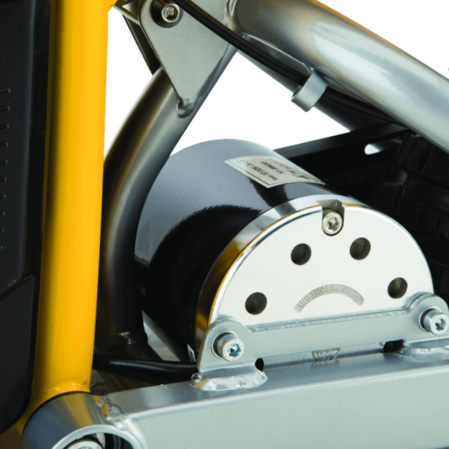 The adjustable riser handlebars ensure a customized fit, and hand operated front and rear disc brakes and twist-grip acceleration control put the driver in command.